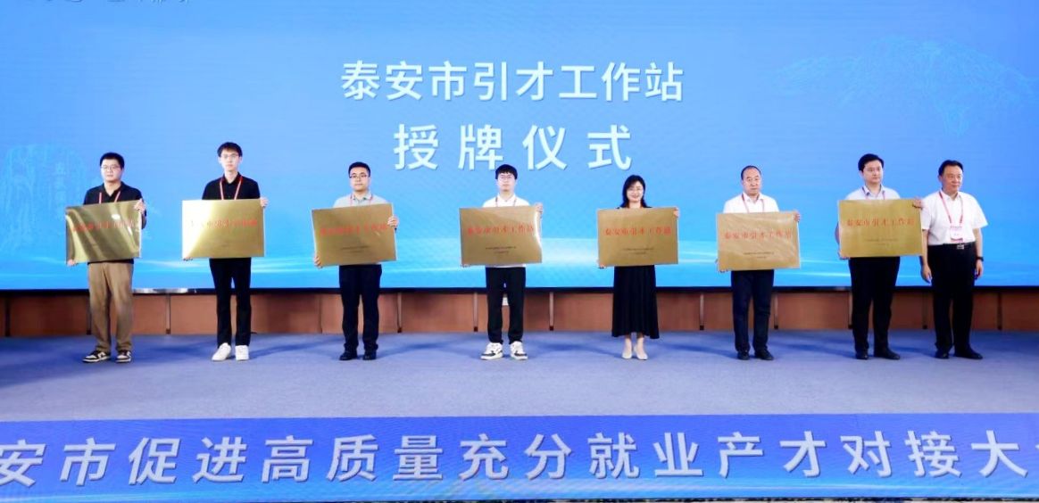 启动仪式上,人社部就业促进司原一级巡视员、中国就业促进会第四届筹委会副主任尹建堃宣讲促进高质量充分就业形势和政策,泰安市委、市政府主要负责同志介绍了泰安市人才政策以及产业链重点企业人才岗位需求。会议期间,泰安市委向学校颁发了“泰安市引才工作站”匾额。