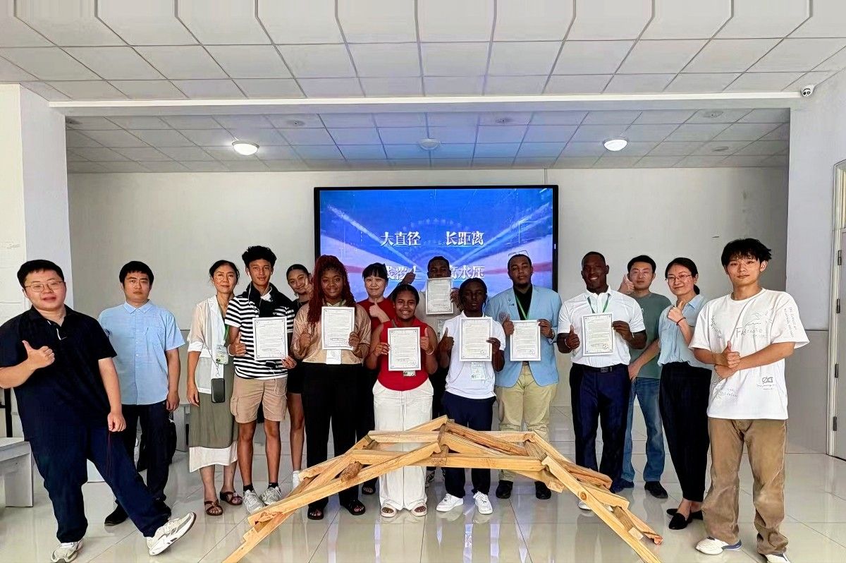 下午,代表团在土木建筑学院实验中心参观路桥模型实验室,以《清明上河图》中的虹桥为切入点,了解虹桥建造基础知识,并协作搭建了大型实体虹桥。