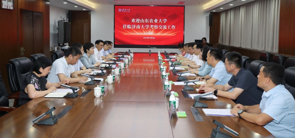 7月3日,山东农业大学党委书记徐剑波,党委副书记张然,党委常委、组织部部长张铁成等一行来校考察交流。学校党委书记刘春华,校长刘宗明,党委常委、副校长李强,党委常委、副校长、组织部部长滕晋,党委常委、宣传部部长卢旺出席座谈会。会议由滕晋主持。