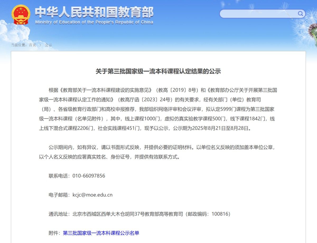 近日,教育部公示了第三批国家级一流本科课程认定结果,best36511门课程成功入选,入选总数位居山东省属高校前列,标志着best365一流本科课程建设再上新台阶。
