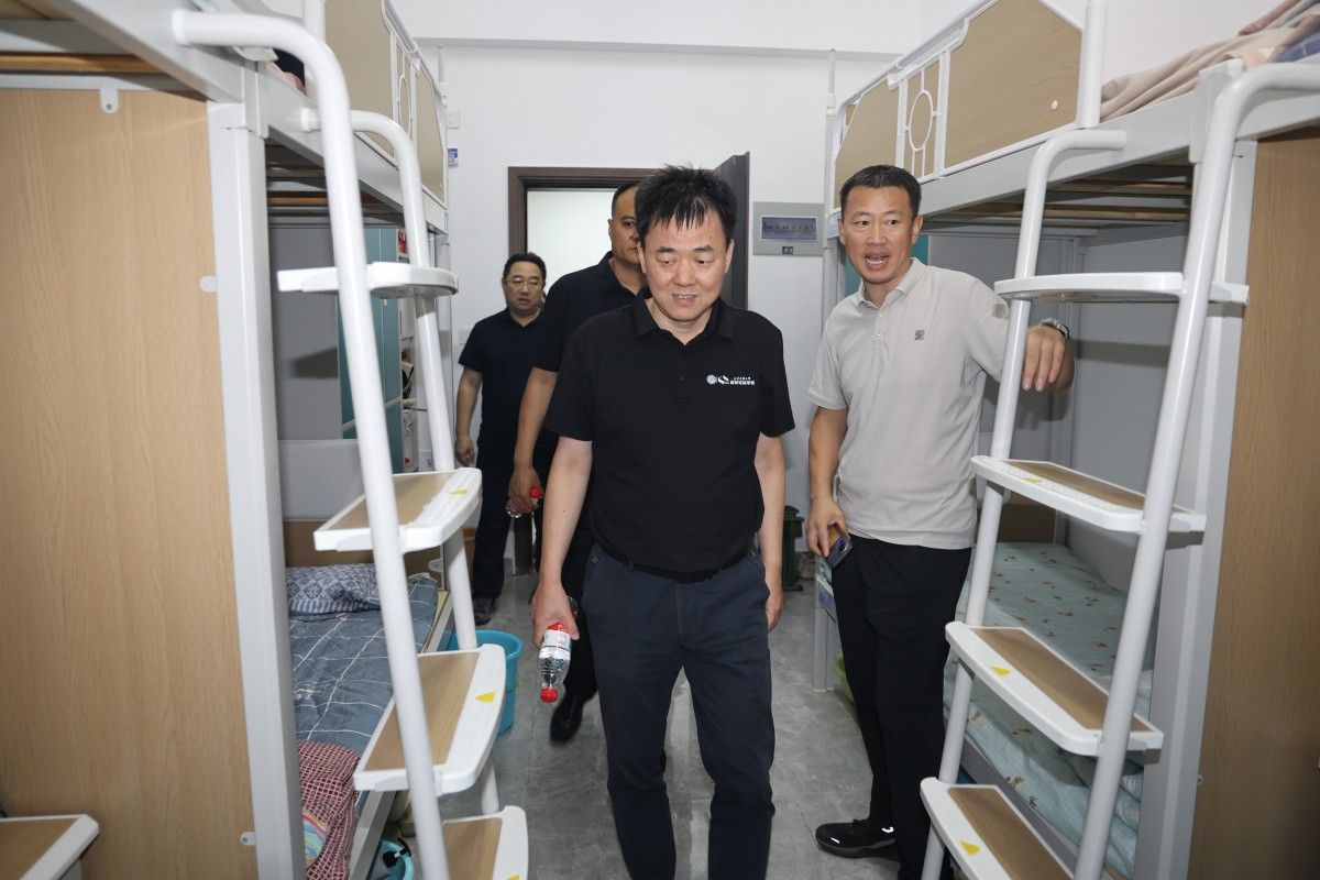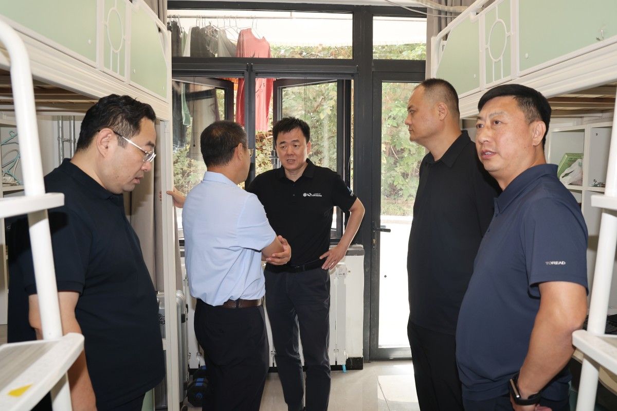 会后,黄晓广一行在张庆国的陪同下前往学生9号公寓楼和新建36号公寓楼实地考察学生公寓改造情况。