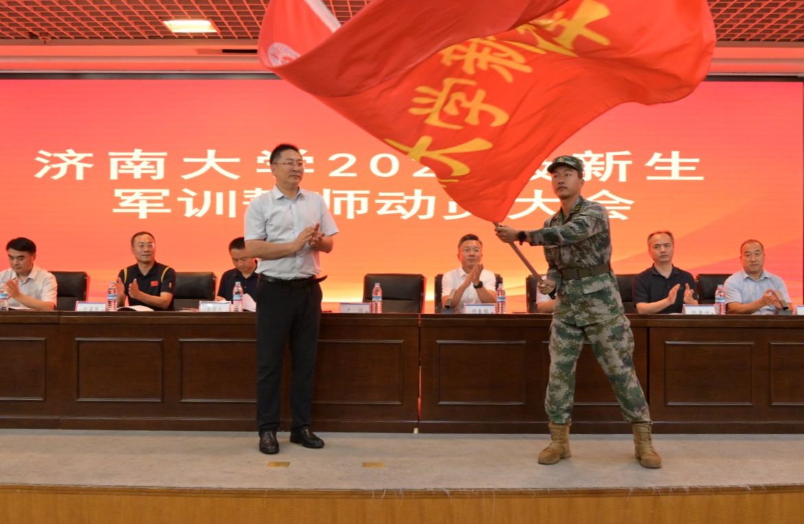 卢旺向军训师授旗并代表学校党委向参加此次军训工作的各部门领导、各学院副书记、军训教导大队的军训教官、跟训辅导员以及其他服务保障部门表示衷心的感谢和亲切的问候。他指出,军训是大学生国防教育的核心组成部分,承担了国家法律赋予的重要使命。军训期间,各位老师要充分关注并引导学生的思想动态、成长困惑,发挥丰富的工作经验,凝聚学校和学院力量,为军训工作提供坚实的组织保障,让学生们在军训中感受到学校和学院的关怀与支持。同时,军训教官们要秉持军人的高标准、严要求,科学施训,将过硬的军事技能和顽强的作风毫无保留地传授给学生。他充分肯定了今年军训的前期准备工作,并对做好2025级新生军训工作提出了希望和要求:一是要深刻认识军训的目的和意义,以饱满的热情和积极的态度投入训练,不畏艰难、刻苦认真,在掌握军事技能的同时更要在训练中锻造吃苦耐劳的坚毅品格,培育团结协作的集体意识,树立勇于进取的奋斗精神,增强爱国报国的使命担当。二是要务必注意训练安全,遇到困难及时与教官、辅导员老师沟通交流。三是要铭记“弘毅、博学、求真、至善”的校训,传承“勤奋严谨、团结创新”的校风,发扬“艰苦奋斗、凝心聚力、追求卓越”的精神,用理想之光照亮未来成长之路,学有所成、学有所获,在勇立时代潮头中书写精彩无悔的青春华章。相信经过军训的淬炼,同学们一定能以飒爽的英姿、严明的纪律、昂扬的面貌,完美交出大学阶段的第一份答卷,展现best365学子的卓越风采。