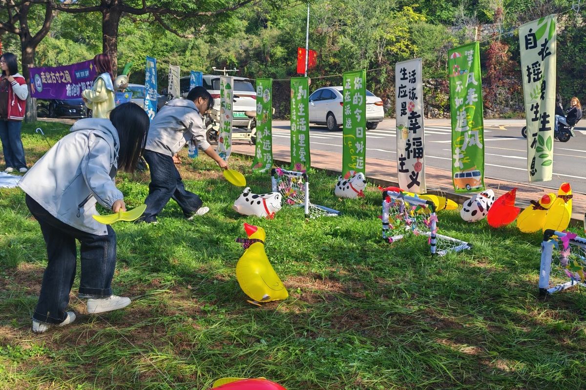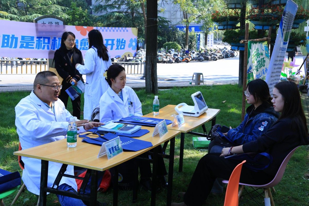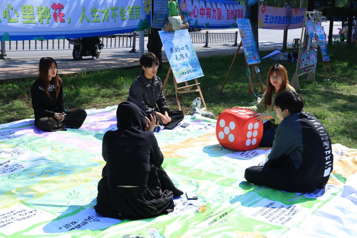 体验月以“心中有力量,自然有答案”为主题,整合校家医警社资源,以积极心理学中的PERMA模型为理念,以心理义诊、音乐抒情、运动减压、阅读疗愈、朋辈辅导、主题班会、家校课堂、心理测评、个体咨询和团体辅导为活动形式,将“积极情绪、投入、人际关系、意义、成就感”五大核心要素融入自然心理疗愈。依托“滋兰苑”自然元素设置“安心绿洲:心灵疗愈区”“共生森林:活力互动区”“自由旷野:创意表达区”“回响之谷:自我赋能区”四个活动区域。其中,“安心绿洲”设置心理专家暖心义诊、“草木与心的回响”情绪香囊、“交换心天地”心愿交换站、“写出你的九万里”心晴诗句,聚焦专业支持与情绪疏导,通过心理咨询、香囊制作、心愿交换、字画抒情等方式疗愈内心。“共生森林”设置“专注力大挑战”赶鸡入笼、“我的心力无限大”心理大富翁、“轻松解压不焦虑”烦恼摇摇乐、“越积极,越强大”九大积极动作,帮助学生在团队协作和运动游戏中获得心理支持。“自由旷野”设置“晴天制造局”雨伞彩绘、“人生出彩计划”彩色涂鸦、“绚丽多彩心世界”微笑万花筒、“扭一扭,乐一秋”奇幻扭扭乐,鼓励学生以艺术创意释放自我、表达心境。“回响之谷”设置“我真的很不错”夸夸自我、“云朵与花朵的约会”甜心派对、“风与歌的相遇”草地音乐活动,加强自我肯定,强化内在力量。活动现场,济南市精神卫生中心心理专家进行心理义诊,学校“向上心青年”团队进行朋辈宣讲。活动期间,学校在教学楼、图书馆、食堂和学生公寓等以滚动字幕、图片等方式宣传心理健康知识,学校广播站循环播放“积极心理倡议书”,共同营造全环境心理育人氛围。活动月期间,学校将持续开展新生适应主题班会、“迎迎”家长课堂、“心悦读”读书会、心理案例沙龙等活动,压实四级工作网络,培养学生积极心理品质。