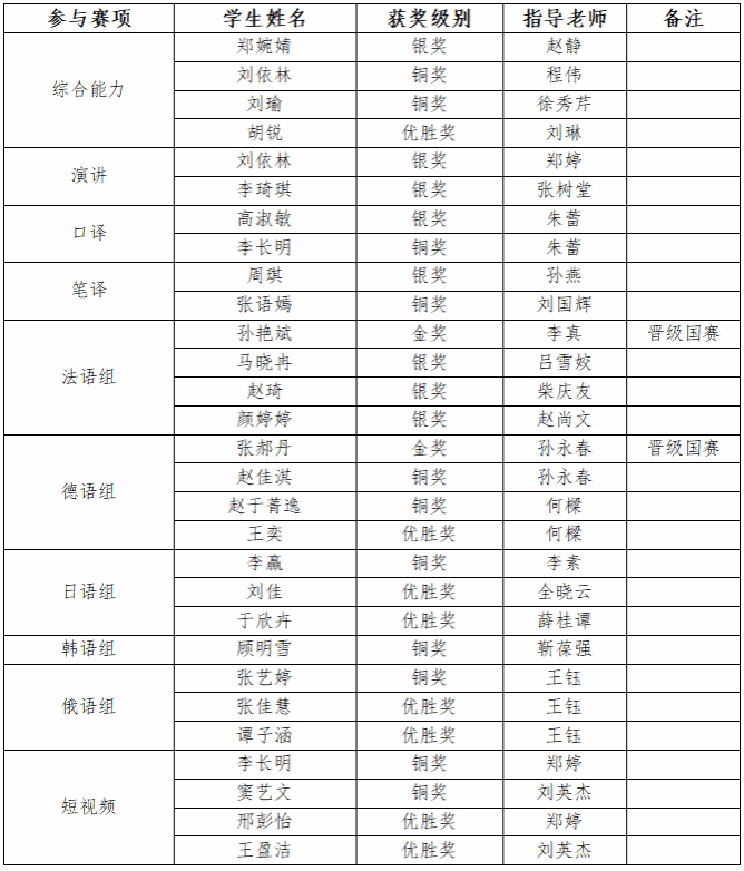 本次成绩充分彰显了学校在外语教育改革创新与思政育人方面取得的扎实成效。在校团委的大力支持下,外国语学院高度重视,坚持“以赛促教、以赛促学、以赛促创”的工作理念,精心组织校内选拔,选派经验丰富的指导教师团队对参赛学生进行指导。优异成绩的取得,激励着外国语学院未来继续以学科竞赛为重要载体,不断提升育人质量与核心竞争力,为学校高质量发展和高素质外语专业人才培养注入新动能。