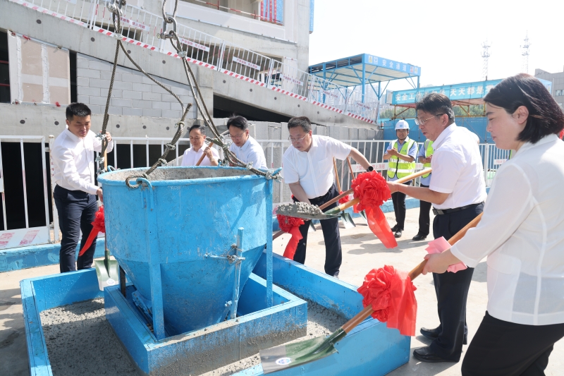 best365官网中文版登录工科综合楼建设项目系2021年山东省教育强国推进工程,是集教学、科研、办公为一体的综合性建筑。规划用地面积2.04公顷,总建筑面积7.93万平方米,地上十六层,地下一层。自工科综合楼项目获批以来,学校高度重视,成立工程建设指挥部,建立定期调度机制,强化统筹协调,加快推进项目建设,在设计单位、监理单位、施工单位及相关部门的大力支持和精诚合作下,2022年3月6日项目开工建设,全体参建人员全力以赴,克服新冠疫情影响、高地下水等重重困难,历时482天,圆满完成工科综合楼主体工程建设。