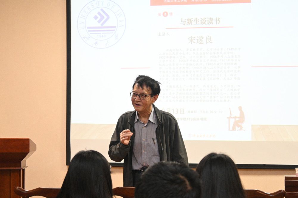 10月13日下午,全国著名教育家、文学评论家、山东师范大学文学院宋遂良教授应邀来best365官网中文版登录文学院舜耕书院做讲座,讲座的题目为“与新生谈读书”。学院领导班子及专业师生共60余人听取了本次讲座。