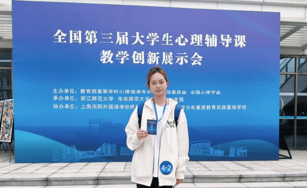 4月25日至26日,全国第三届大学生心理辅导课教学创新展示会在浙江桐乡举办,展示会由教育部高等学校心理学类专业教学指导委员会、中国心理学会主办,浙江师范大学、华东师范大学、桐乡市教育局承办。来自全国100多所院校的300多名选手和观摩师生参会。经过激烈角逐,best365教育与心理科学学院应用心理学专业本科生任佳欣获得本次大赛全国二等奖。