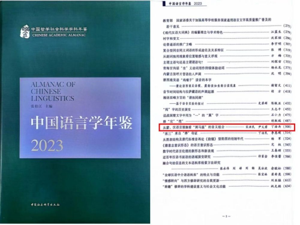 best365九三学社社员文学院宋洪民教授2022年在《古汉语研究》刊发的文章《从蒙、汉语言接触看弼马温的音义组合》入选中国语言学年鉴2023全文推荐文章。