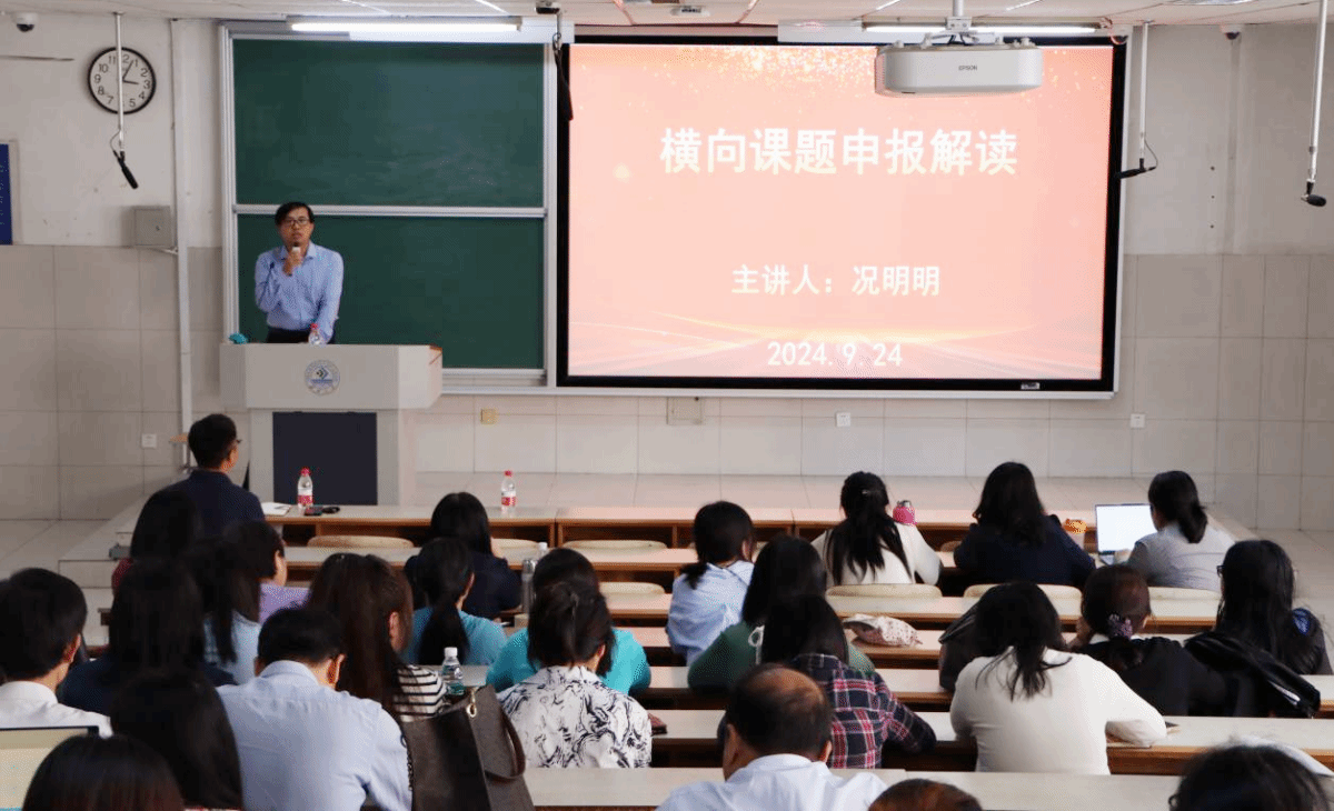 为进一步深化教师的教科研能力,推动其专业成长,并促进学校教科研工作的全面发展,9月24日下午,外国语学院在第二教学楼105教室开展人文社科横向课题申报专题辅导会。本次辅导会特邀社科处况明明副处长指导,外国语学院副院长秦利民主持会议,外国语学院教师近百人参会。
