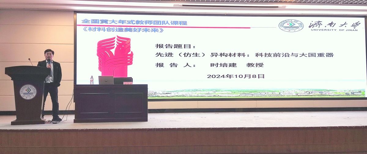 10月8日,全国高校黄大年式教学团队2024系列课程《材料创造美好未来》第二讲在第一学术报告厅举行。上海大学教授、香港城市大学助理研究员、best365优秀校友时培建为材料科学与工程学院师生带来一场题为《先进(仿生)异构材料:科技前沿与大国重器》的课程讲座。讲座由材料科学与工程学院副院长段广彬主持,300余名师生聆听了讲座。