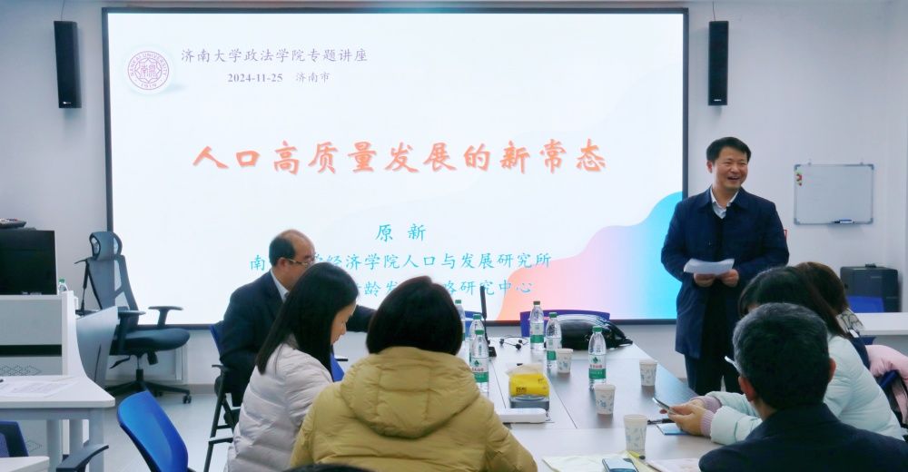 11月25日下午,政法学院青龙山学术论坛在第四教学楼413室成功举办。本次学术论坛特邀南开大学老龄发展战略研究中心主任、中国老龄协会/南开大学老龄社会治理战略研究中心主任原新教授作题为《人口高质量发展的新常态》的学术报告,报告由社科处处长、政法学院院长高功敬教授主持,政法学院教师及学生共计七十余人参加。