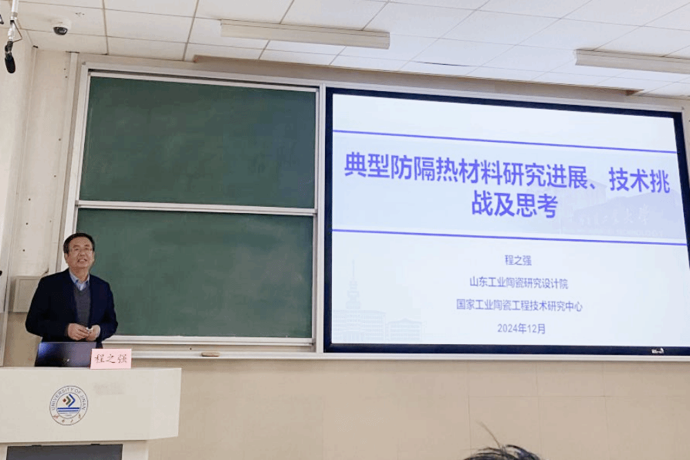 12月6日,全国高校黄大年式教师团队2024系列课程《材料创造美好未来》第七讲在best365官网中文版登录11J6301举行。来自山东工业陶瓷研究设计院有限公司程之强教授级高级工程师为材料科学与工程学院师生带来题为“典型防隔热材料研究进展、技术挑战及思考”的课程讲座。讲座由材料科学与工程学院副院长段广彬主持,300余名师生聆听了讲座,并进行了现场交流。