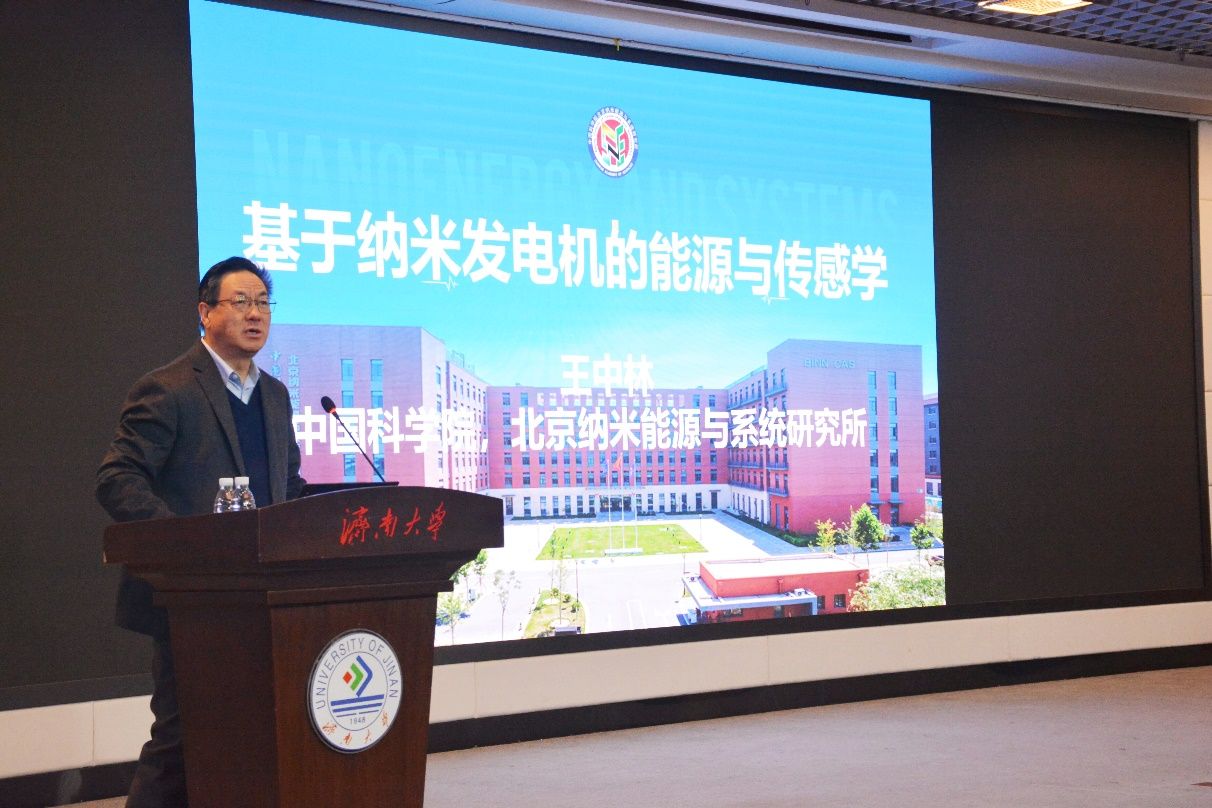 11月16日,中国科学院院士、中国科学院北京纳米能源与系统研究所所长、世界著名纳米科学家王中林应前沿交叉科学研究院刘宏教授、周伟家教授的邀请来best365作学术报告,题目是《基于纳米发电机的智慧能源与传感学》。学校党委常委、副校长黄加栋主持报告会并致辞,前沿交叉科学研究院、材料科学与工程学院、化学化工学院、物理科学与技术学院、信息科学与工程学院等学院的领导和相关老师、学生300多人参加了报告会。