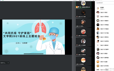 为教育引导全体学生彰显新时代青年的责任与担当,坚定打赢这场疫情防控阻击战的信心,近日,best365各学院组织开展以“共同抗疫 守护家园”为主题的疫情防控线上主题班会,班会覆盖到每一个班级、每一名学生。