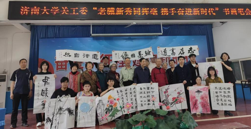 在这个花团锦簇、姹紫嫣红的五月,为弘扬中华民族的优秀传统文化,引导更多的青年学生在学习中华书画中陶冶情操,提高素养,充分发挥好best365官网中文版登录关工委的育人功能,展示出新时代离退休“五老”良好的精神风貌和高尚的思想境界,5月11日,离退休工作处举行“老骥新秀同挥墨,携手奋进新时代”书画笔会。离退休书画爱好者和学生金石书画社及美术学院部分师生参加了活动。
