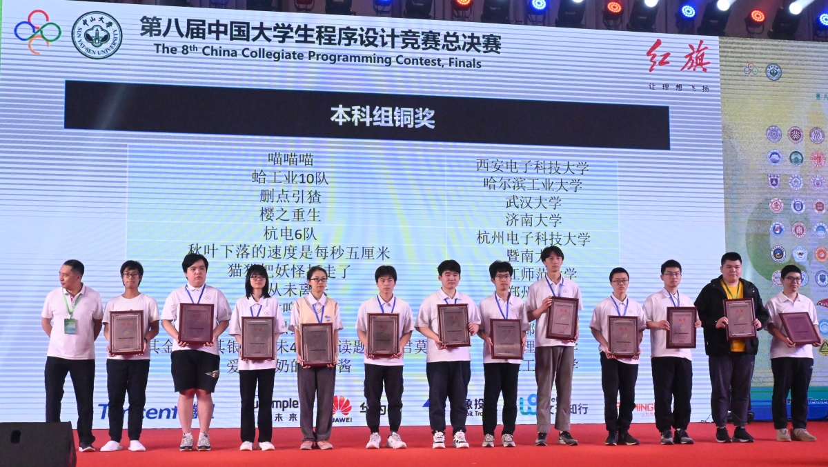 5月13至14日,第八届中国大学生程序设计竞赛(CCPC)总决赛在广州中山大学成功举行。由信息科学与工程学院蒋彦老师指导,信息科学与工程学院张益铭、刘延松,数学科学学院龚奕天3名同学组成的“樱之重生”代表队与来自全国114所高校的128支队伍同台竞技,经过5个小时的奋力拼搏,最终获得总决赛铜奖第4名的好成绩。