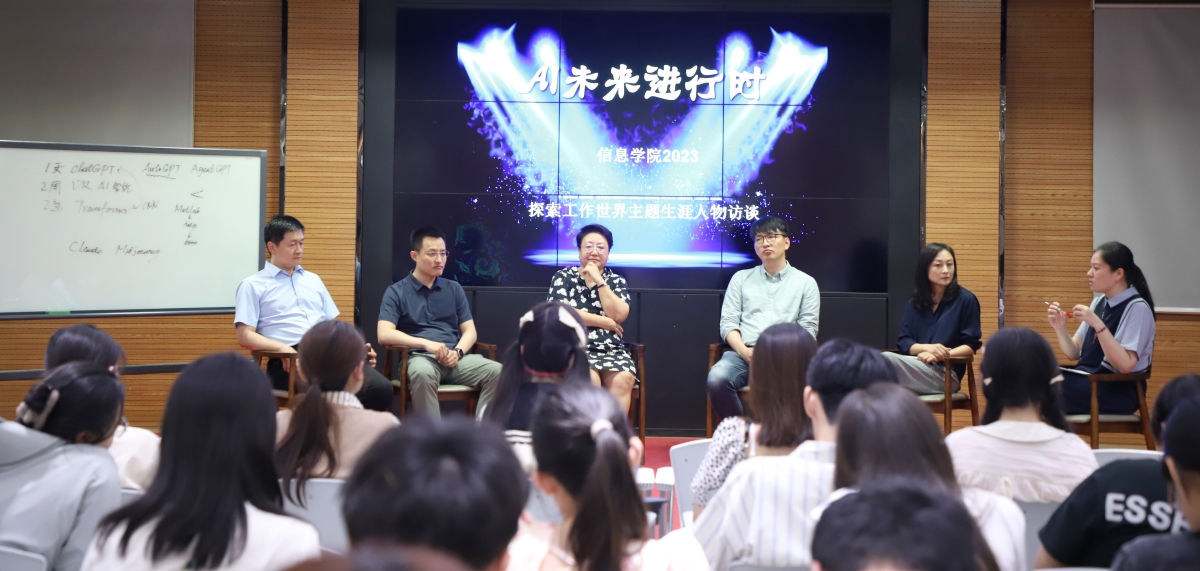 对话职场,把脉生涯。5月16日,信息科学与工程学院“生涯面对面”之“AI已来,把握未来”——职业生涯人物访谈沙龙活动在创业学院B座路演大厅隆重举行。创业学院、信息科学与工程学院相关负责人,学院学生工作办公室相关负责老师以及100余名学生代表参加活动。