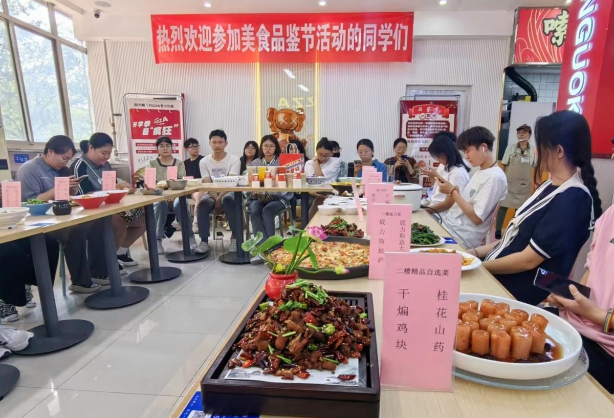 本次品鉴会共有270多位同学报名参加,食堂各窗口制作了桂花山药、干煸鸡块、蒜香排骨、芝士披萨、手工水饺等50多道中式佳肴及各类风味小吃,活动现场气氛热烈、秩序井然,各道精美菜式让乘兴而来的同学们一饱口福,纷纷点赞。