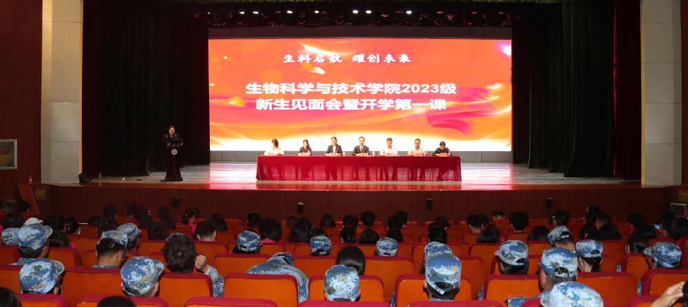 9月22日,生物科学与技术学院2023级新生见面会暨开学第一课活动在主校区礼堂举行。学院领导班子成员、系主任、专业负责人、教师代表、全体辅导员,教学及研究生管理相关负责人,2023级全体本科生和研究生出席活动。活动由学院党委副书记、副院长武芳主持。