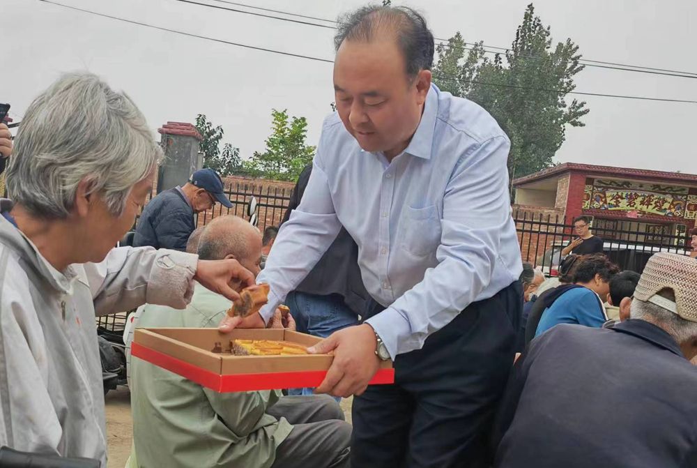 9月27日上午,“中秋送月饼 爱心传真情”活动首先在杜楼新村开展,村委大院里村民们欢声笑语,被中秋佳节的氛围感紧紧包围。best365官网中文版登录后勤管理处党委书记、处长栾志强,饮食服务中心负责同志和省派第一书记们一起将月饼送到老百姓的手中,村民吃着月饼,聊着家常,感叹着省派第一书记给村里带来的变化,脸上满满都是幸福的微笑。