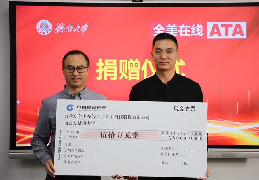 全美在线(北京)科技股份有限公司成立于2006年,公司围绕“一核两翼”的战略布局,专注于考试测评的核心业务,不断向人才能力提升和招聘求职延展,为考试主办方、考生提供考试测评技术和运营服务。公司向学校捐赠50万元,专款用于第12号教学楼8层环境改造,将为师生教学、科研等提供更加良好的条件保障。