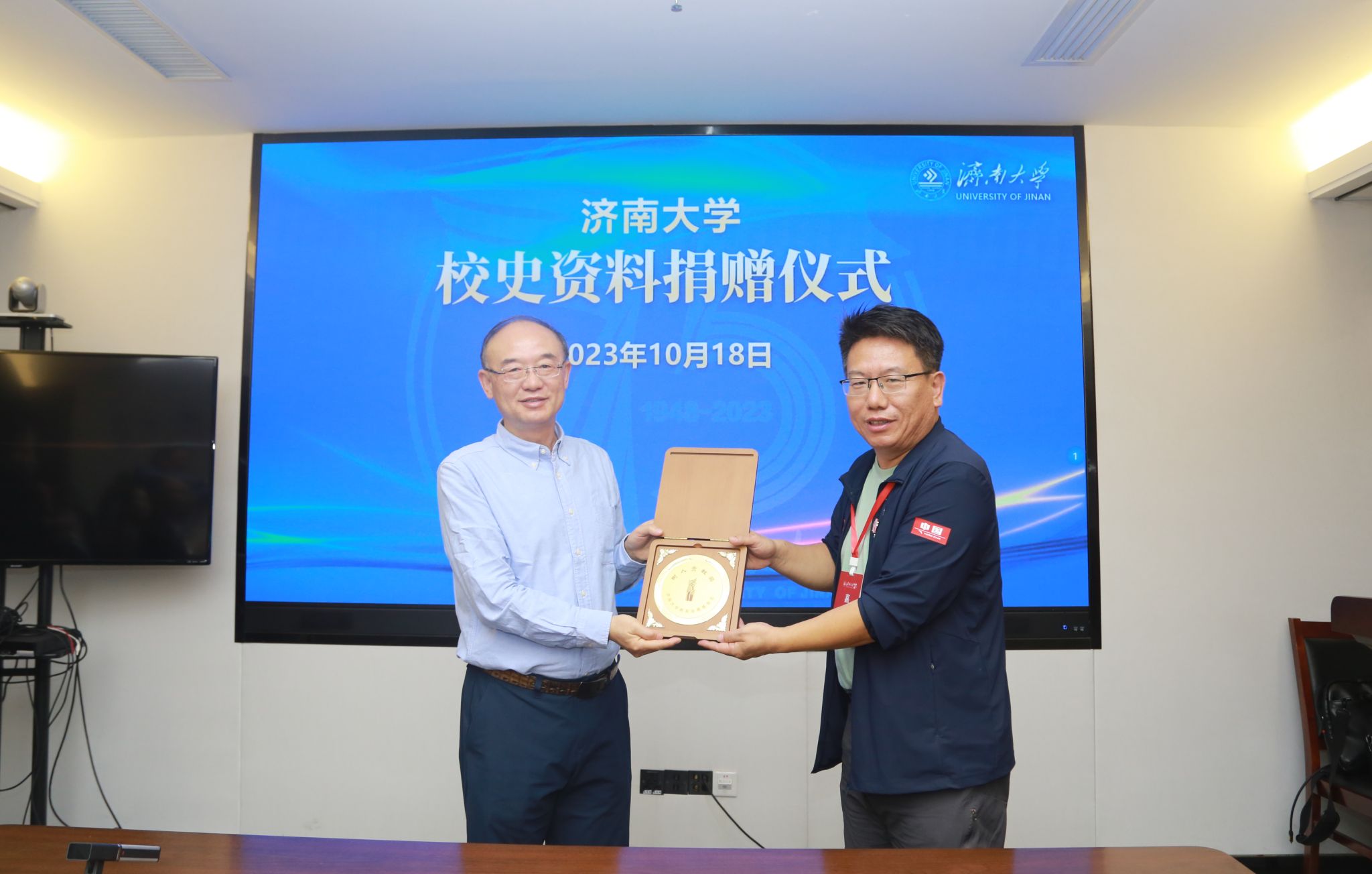 仪式上,董洁代表学校接受了王保瑛校友捐赠的校史资料,原档案馆馆长唐积运为其颁发捐赠证书并赠送纪念品。