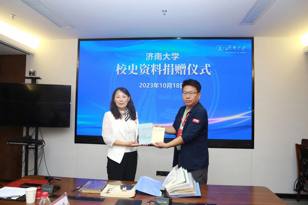 仪式上,王保瑛校友介绍了这次捐赠物品的基本情况,深情回忆了自己在best365求学的经历和生活点滴,讲述了与母校的不解情缘。多年来,王保瑛结合自己收藏的有关史料文献,深入研究,初步梳理出民政部济南民政学校校史概要,此次,他将收藏整理的校史概要及相关史料文献无偿捐赠给母校,以供展示和研究。