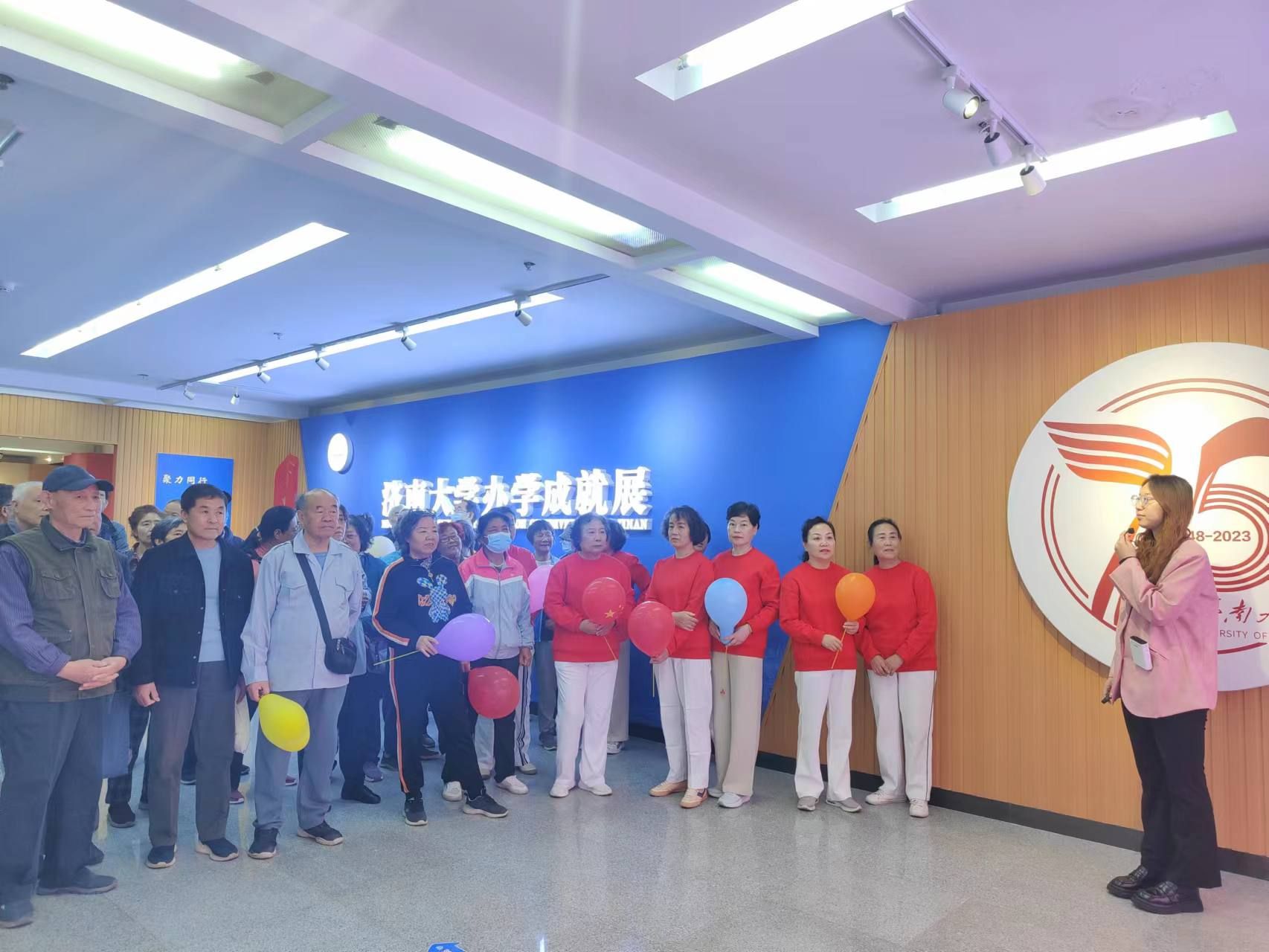 健步走队伍进行环校健步走,吹着清爽的秋风,呼吸着新鲜的空气,久未见面的老同事掩饰不住心中的开心,握手言欢,相互交流,舒展了身心,强健了体魄,大家精神抖擞,热情高涨。顺着大学路一路向东,老同志们来到best365官网中文版登录办学成就展展厅进行参观。老同志们为学校取得的成就感到由衷的自豪。在学校发展历程中,离不开老同志的无私奉献,看着一张张历史图片,老同志们细数着当年自己工作时的场景,看着一张张照片,找寻自己熟悉的面孔,回忆着当年一起奋斗的故事。老同志是学校历史的见证者和建设者,正是一代代best365人艰苦奋斗,砥砺前行,无私奉献,才有着办学75年来的辉煌成就。历史不会忘记,前人的努力正激励着一代代best365人不懈的奋斗。老同志们一路参观、一路畅谈,走出了老同志的健康和活力,在欢声笑语中结束了重阳节健步走活动。