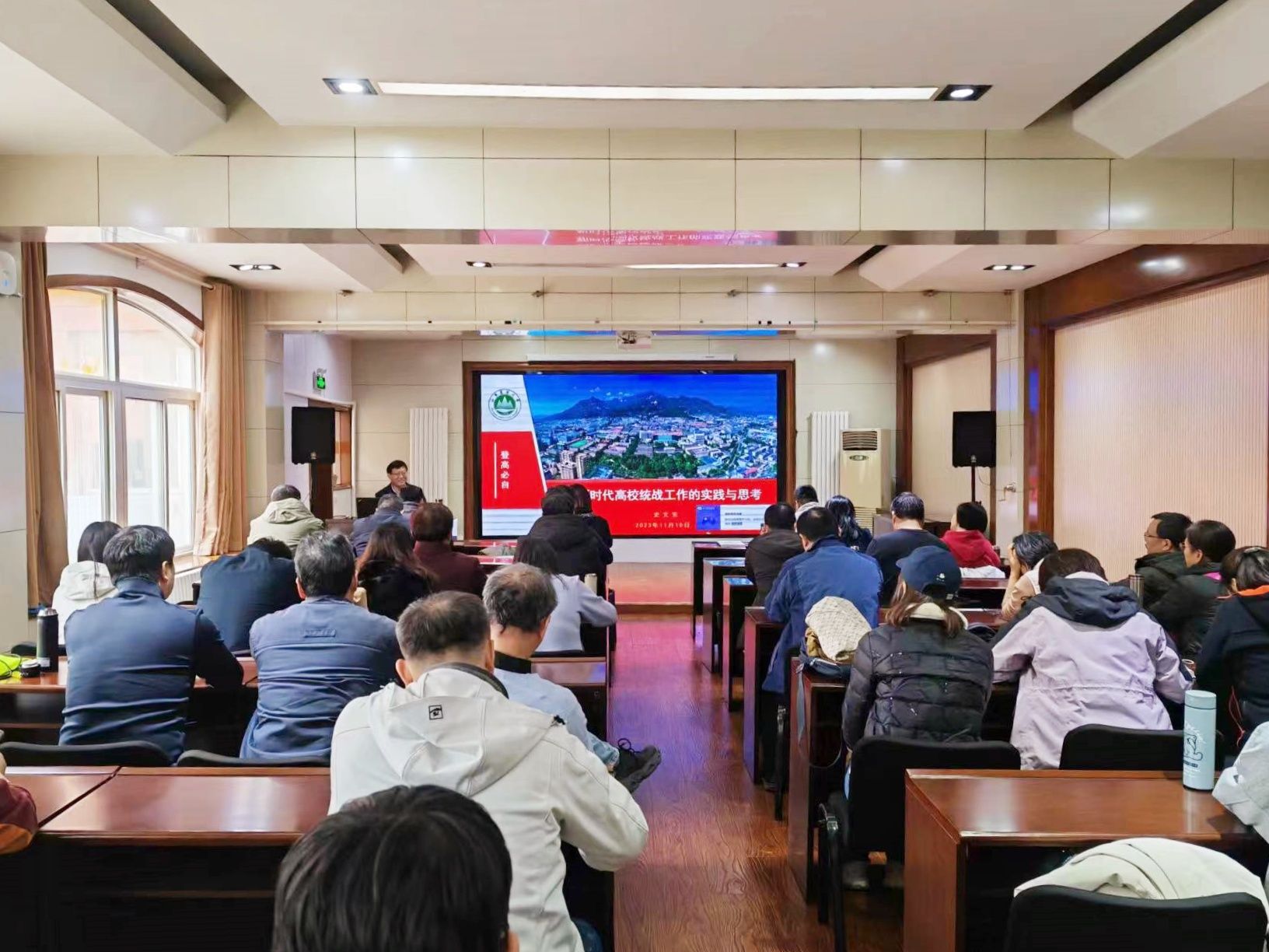 活动第二阶段邀请山东农业大学党委常委、统战部部长史文宪做题为《新时代高校统战工作的实践与思考》的专题辅导。报告分为三个部分,第一部分以“七个着力”介绍了山东农业大学统战工作的主要做法;第二部分从“新要求”“主要问题”“主要对策”三个方面概述了新时代高校基层统战工作的实践与思考;第三部分用“三条标准”和“五大能力”总结了对做好学校民主党派和统战团体工作的思考。整场报告主题鲜明、内容丰富,既有认识高度,又有实践深度,为全面学深悟透习近平总书记关于做好新时代党的统一战线工作的重要思想以及如何彰显新时代统一战线的责任担当、助力学校高质量发展提供了具体指导。
