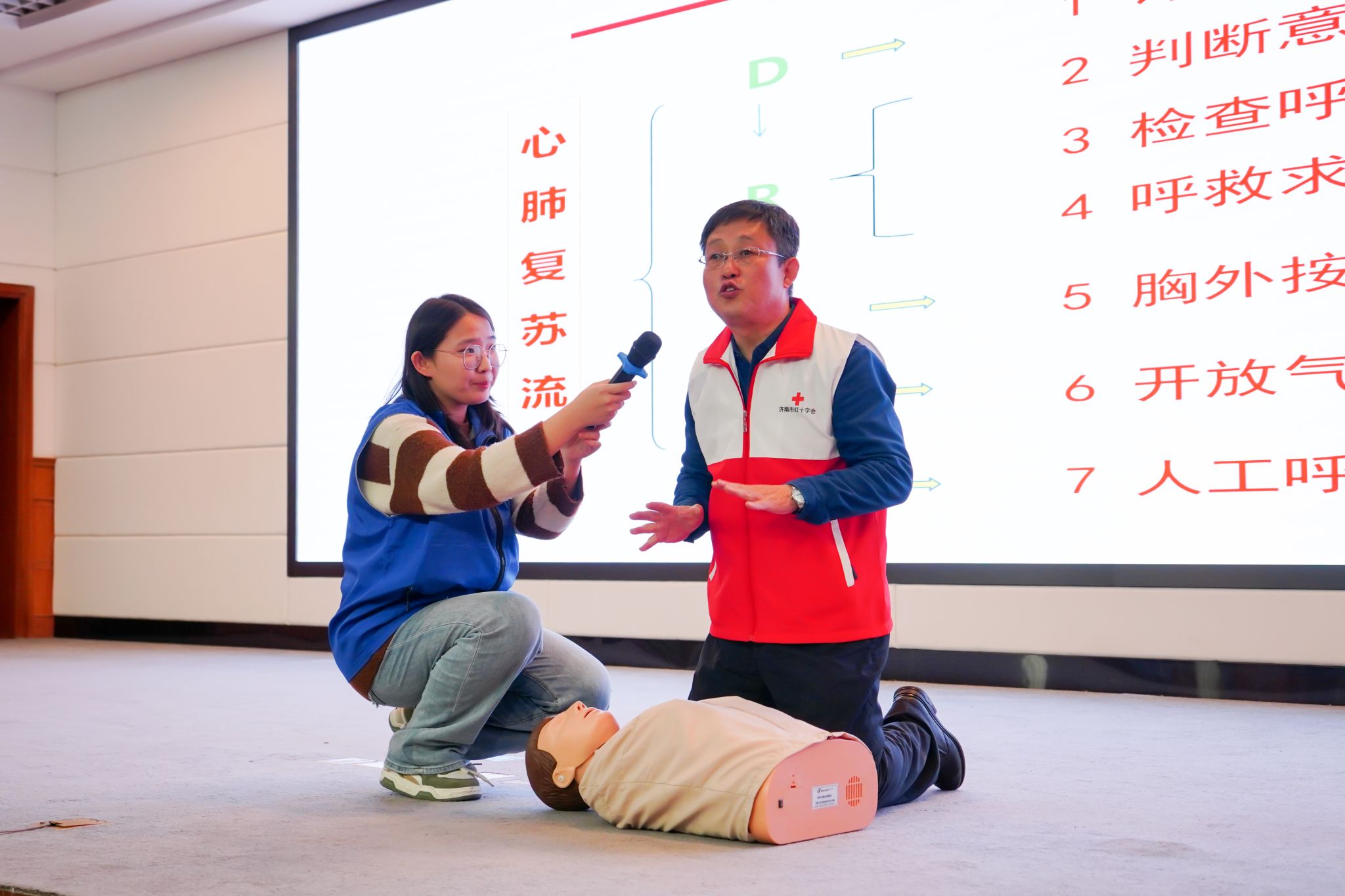 为进一步深化“四送四进四提升”健康促进行动,提升同学们的健康素养,11月23日,学校团委联合山东省血液中心举办“热血青春,健康先行”科普知识进校园主题宣讲活动。本次活动包括应急救护培训和无偿献血知识讲座两部分,分别由济南市红十字会救护培训师司春峰和山东省血液中心宣讲员朱萍担任主讲,3000余名师生线上线下同步观看,共上一堂健康教育课。