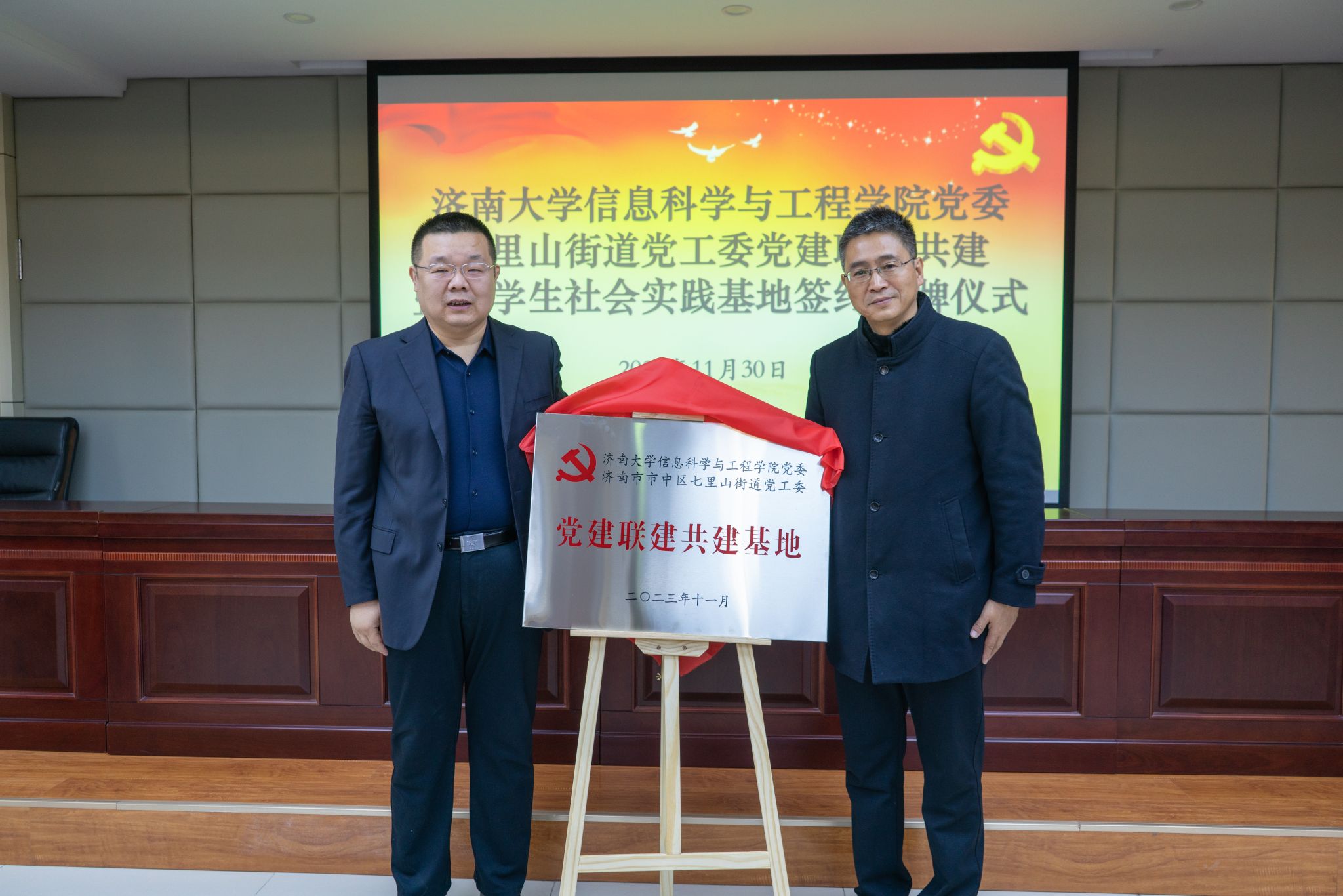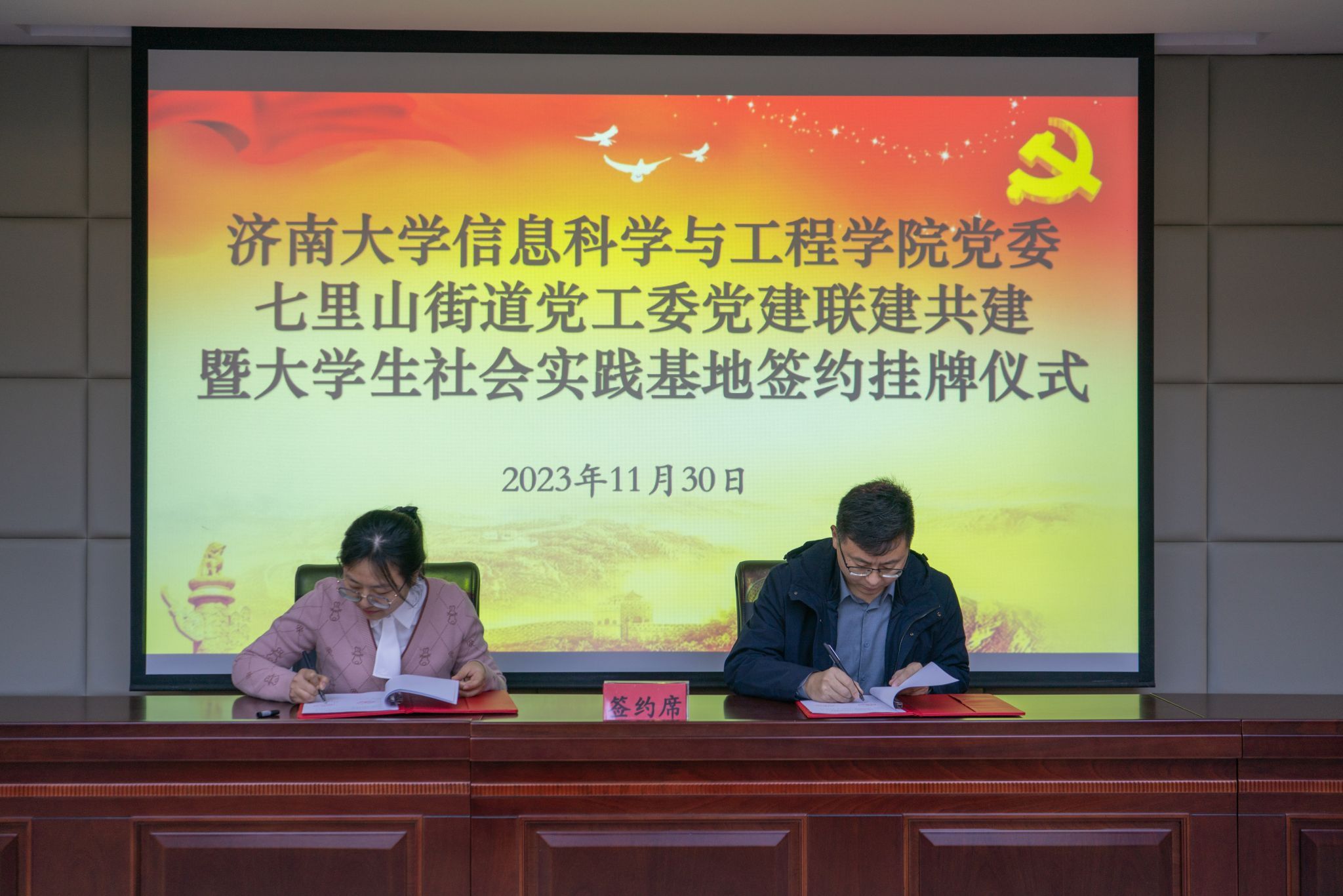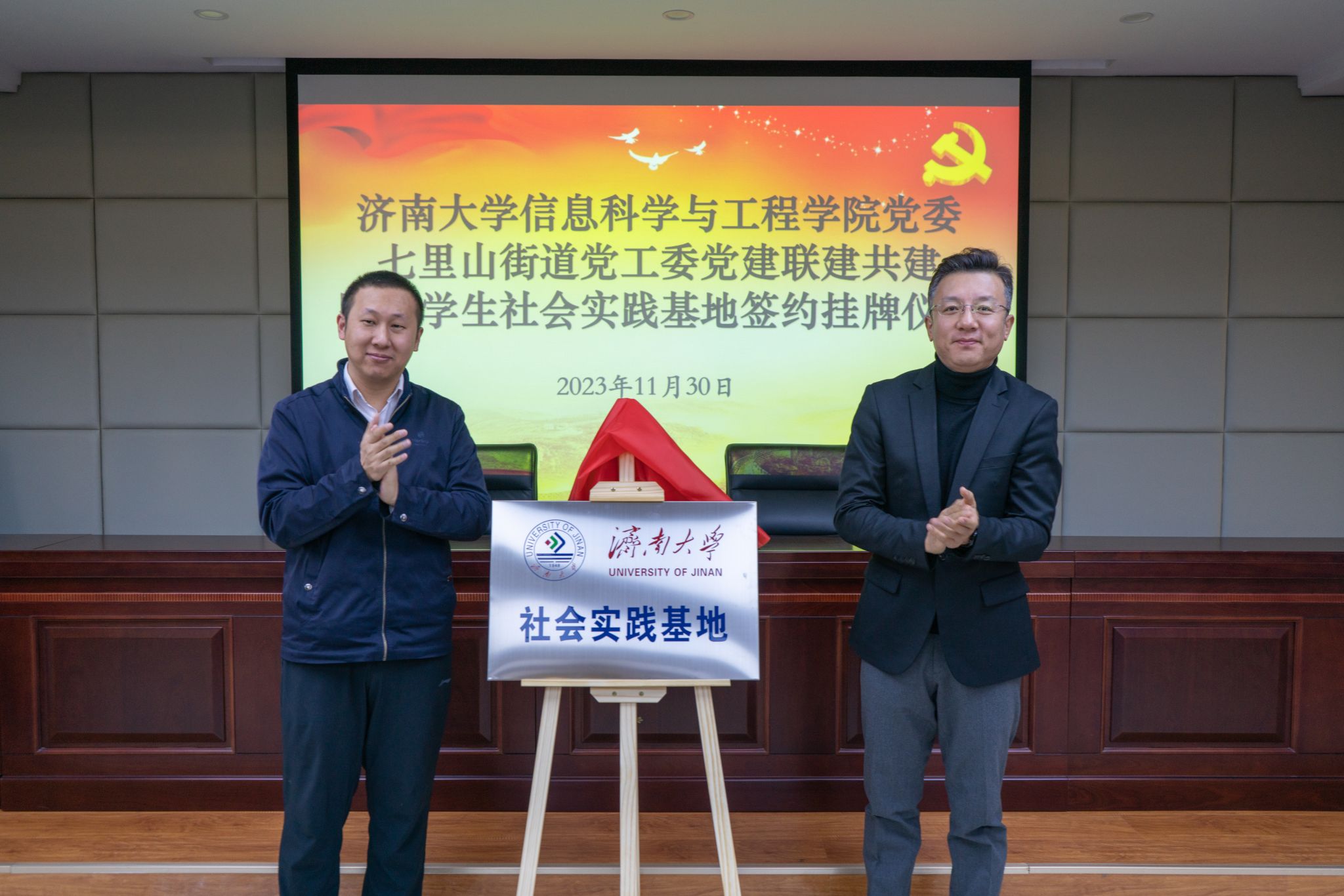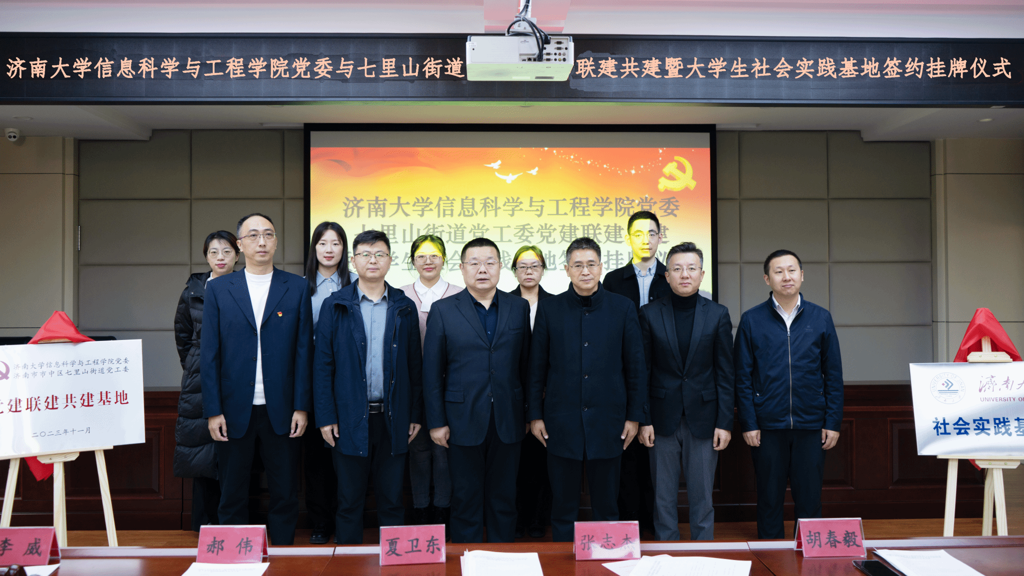为了深入贯彻落实习近平新时代中国特色社会主义思想和党的二十大精神,积极响应团中央“百万大学生进社区”的号召,进一步推进校地融合、双向共建,搭建高校人才到基层实践锻炼平台,通过党建引领,共同探索基层治理新模式、新路径,11月30日上午,信息科学与工程学院与济南市市中区七里山街道党工委党建联建共建暨大学生社会实践基地签约挂牌仪式在七里山街道党群服务中心举行,共青团济南市市中区委书记党淼,济南市市中区七里山街道党工委书记张志杰,党工委副书记李威,党工委委员、办事处副主任隗娜,best365官网中文版登录团委书记胡春毅,信息科学与工程学院党委书记夏卫东,党委副书记、副院长郝伟,七里山街道相关负责人,学院全体辅导员以及学生志愿者代表参加仪式。仪式由隗娜主持。