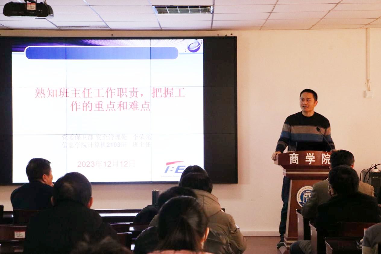 为落实好高校立德树人根本任务,充分发挥班主任的重要作用,进一步加强学风建设和班级管理,12月12日下午,商学院在经管楼615会议室召开班主任工作研讨会,学院领导班子成员、各系主任、全体班主任和辅导员参加会议。会议由学院党委副书记、副院长袁海占主持。