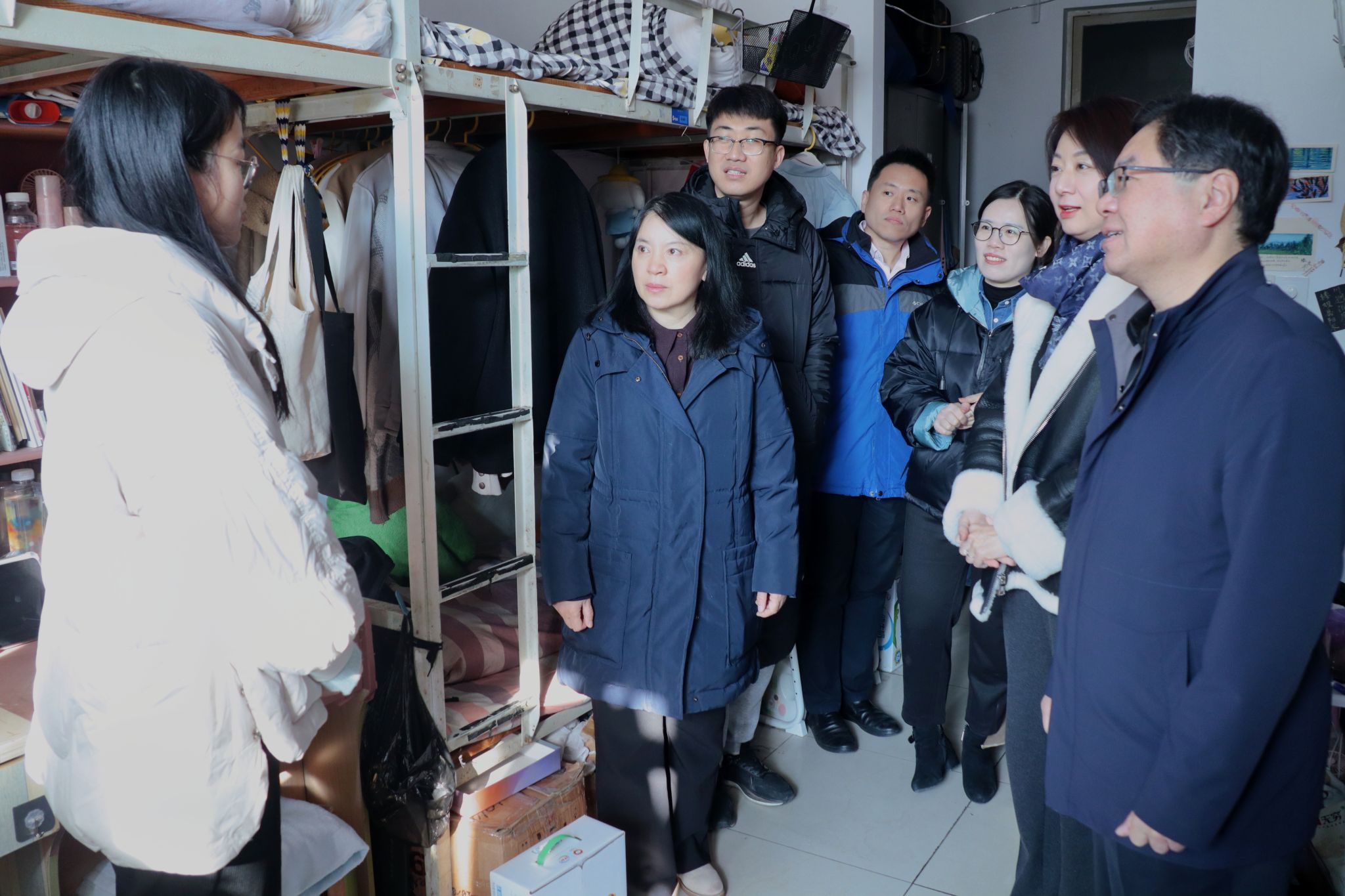 当前,2024届学生考研已进入最后的冲刺阶段,为鼓励我院学子积极应考,帮助同学们缓解考试压力、增强考试信心,12月12日上午,文学院举办“2024届毕业班送温暖”活动。学院党委书记董海军、院长范丽敏、党委副书记副院长潘颖、学院挂职党委副书记山东青年政治学院文化传播学院李杨、副院长鲁毅及全体辅导员通过走访毕业班宿舍,深入了解学生近期备考状态,倾听同学们的诉求,并发放慰问品,鼓励大家保持良好的心态,以便充分发挥自身潜力。同学们纷纷表示:感谢学院领导和老师们的关爱,会倍加珍惜这份温暖,自己一定会不负众望,以优异的成绩回报学院的培养。