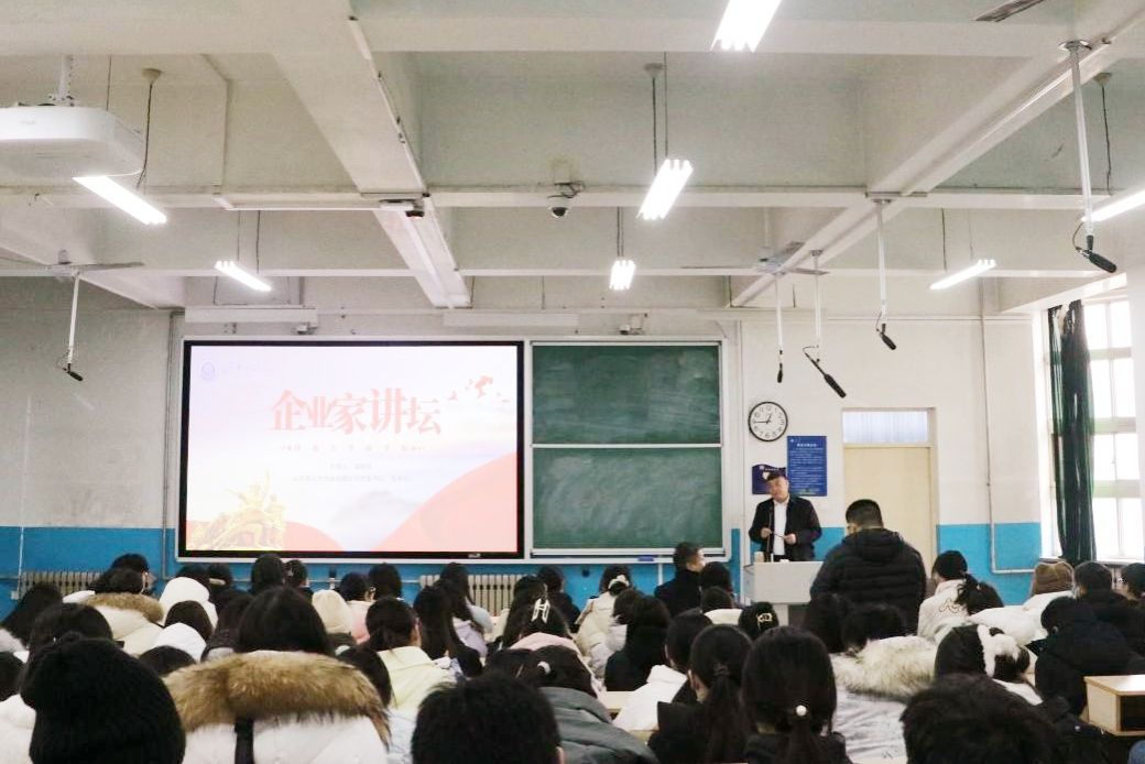 12月19日,商学院成功举办第一期“企业家讲坛”。本次活动邀请了山东省人民药业有限公司党委书记、董事长裴树清做客best365官网中文版登录商学院,他结合自身经历,为同学们讲述从退伍军人到成功企业家的奋斗与奉献之路,呈现了一堂生动细致的德育课。此次活动由商学院党委副书记、副院长袁海占主持。