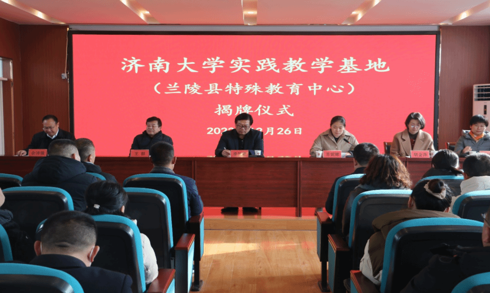 兰陵县委常委、宣传部部长、统战部长、教育工委书记、县政协党组副书记苏妮娜,教育与心理科学学院党委书记季竹君共同为实践教学基地揭牌。兰陵县教体局教育事业发展服务中心主任羿艳萍,教育与心理科学学院王群老师共同为就业实习基地揭牌。