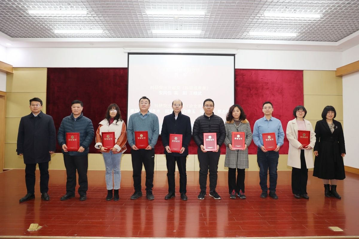 为选树典型,表彰先进,进一步弘扬爱岗敬业、教书育人的精神,学院首先对2023年获得省级、校级荣誉称号的各位教师进行了表彰,接着,对在本科和研究生教育、科研成果、专业学科建设、科创育人、学院服务等方面取得突出成绩的先进个人进行了表彰,学院领导和教授代表为获奖教师颁发了荣誉证书。