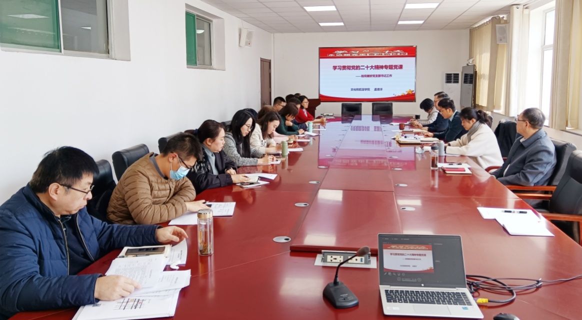 最后,孟德洋作了题为“学习贯彻党的二十大精神——如何做好党支部书记工作”专题党课。他向全体党支部书记提出,要坚决明确六条职责,努力提升三项素质,正确处理五种关系,坚定树立四个目标。各支部书记纷纷表示,将进一步提高认识,凝聚共识,不断提高工作能力和本领,团结带领全体同志履职尽责,不断发挥党支部战斗堡垒作用,为学院高质量发展作出贡献。