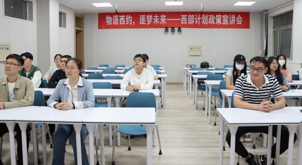 为切实做好2024年大学生志愿服务西部计划的招募宣传工作,引导广大青年到西部去、到基层去、到祖国和人民最需要的地方建功立业,4月16日晚,物理科学与技术学院和外国语学院通过线上和线下相结合方式联合举办“物语‘西’约,逐梦未来”西部计划政策宣讲会,物理科学与技术学院团委书记欧阳阳、外国语学院团委书记吴杨洋,40余名毕业生参加活动。活动由物理科学与技术学院毕业生辅导员卢洪斌主持。