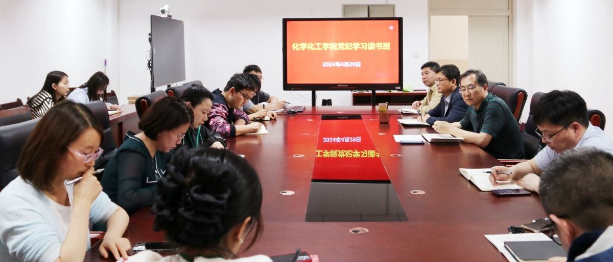 为确保党纪学习教育走深走实,根据学校党纪学习教育统一安排部署,4月29日下午,化学化工学院在逸夫楼A315组织开展党纪学习教育读书班。学院班子成员、全体师生党支部书记参加学习。