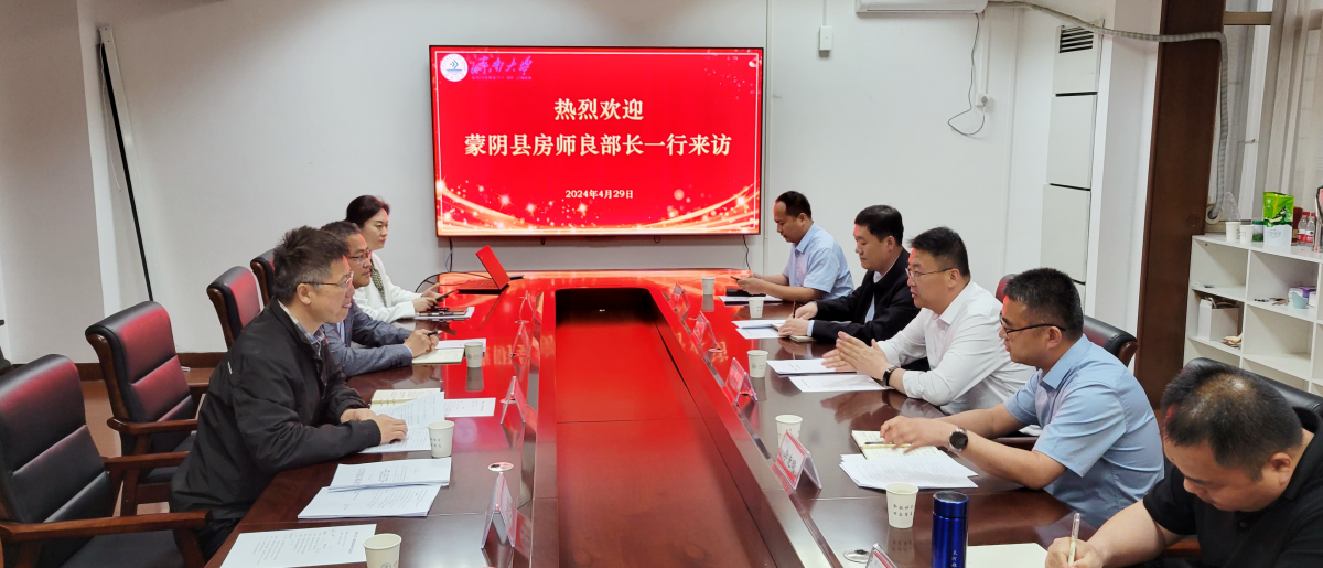 4月29日,蒙阴县委常委、组织部部长房师良一行来校对接校地合作,蒙阴县科技局、人才工作集团有限公司以及部分企业代表,合作发展处、科技处相关负责人参加座谈交流。