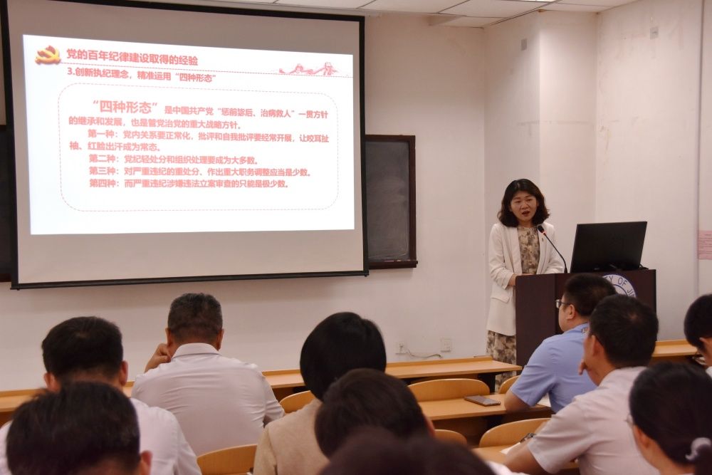 为深入推进落实《中共best365官网中文版登录委员会关于开展党纪学习教育的工作方案》,扎实开展党纪学习教育,6月5日下午,学校纪委副书记孙菲菲以《守纪律,讲规矩,做维护党的纪律的忠诚卫士》为题,在第五教学楼306教室为材料科学与工程学院2024学年第一期党员发展对象作“青廉课堂”党纪专题党课,学院党委理论学习中心组成员及部分学生党员代表集体听课,党课由材料科学与工程学院党委书记孙卫星主持。