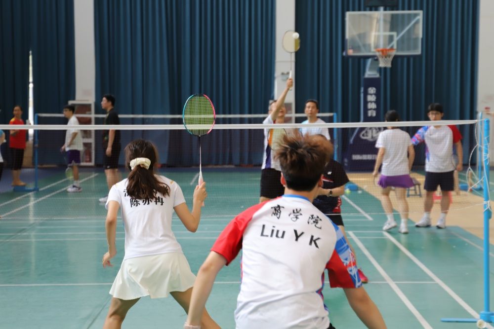 6月7日下午,商学院第三届毕业季羽毛球师生友谊赛在舜耕校区体育馆举办。在商学院学习和工作过的干部教师,商学院领导班子成员、师生参加了此次活动。本次比赛师生们以球会友,展现团结、拼搏、进取的精神风貌,为即将毕业的2024届学子留下美好而又难忘的回忆。