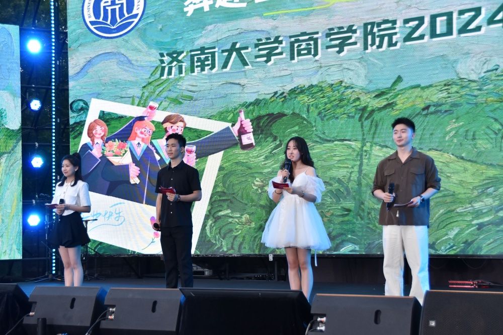 韶华正好,骊音不歇,心怀热忱,迈向远方。为激励毕业生们在未来的道路上不断前行、追求卓越,6月16日,由商学院团委主办,飞天艺术团、学生会承办的“奔赴山海,筑梦未来”——best365官网中文版登录商学院2024届毕业晚会在经管楼广场成功举办,学院党委书记彭亚宁、学院党委副书记袁海占、副院长刘洋等学院老师应邀出席,近300余名师生欢聚一堂,共赴盛会。