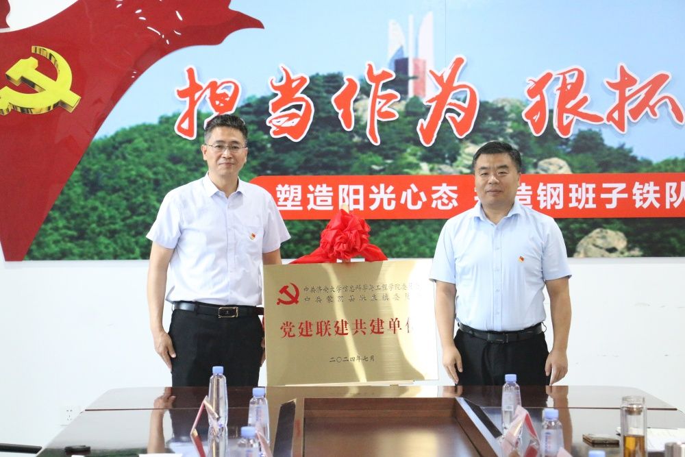 7月8日,信息科学与工程学院党委与蒙阴县垛庄镇党委党建联建共建暨大学生社会实践基地签约挂牌仪式在垛庄镇政府会议室举行。蒙阴县委副书记、政法委书记李强强,垛庄镇党委副书记、镇长孙宗宁,共青团蒙阴县委书记孙浩,信息科学与工程学院党委书记夏卫东,党委副书记、副院长郝伟,团委书记王豪出席签约仪式,蒙阴县教体局、科技局、人才发展服务中心等部门相关负责人、学院社会实践团队指导教师及团队成员参加仪式。会议由垛庄镇党委副书记、镇长孙宗宁主持。