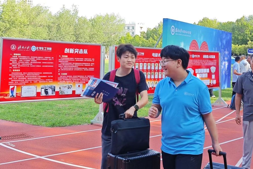 今年迎新过程中,有一批新生志愿者的身影格外引人注目,虽然自己也是初来乍到,却已迫不及待想要为学院贡献一份力量。在老生志愿者的带领下,他们一同引导新生办理入学手续,帮助新生搬运行李,解答学生家长疑惑,彰显了一批批化院学子的蓬勃朝气与青春担当。
