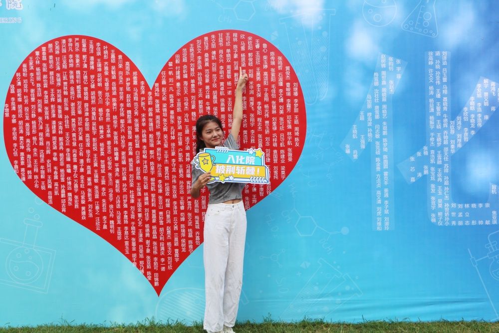 学院结合自身特色,为每位新生精心准备入学礼包,不仅包含学生手册、文创立牌等,还根据学院学生工作特色品牌活动“榜样”,印制历届榜样团成员成长折页,让大一新生树立学习典范,明确大学愿景,激发内在潜能,激励勇毅逐梦。学院迎新现场设置了学院简介和别出心裁的拍照打卡展板,以“我爱化院”为主题,将所有新生的姓名和化学元素符号融入其中,新生们纷纷驻足,与自己的名字合影留念,无形中增进了新生的融入感与归属感。