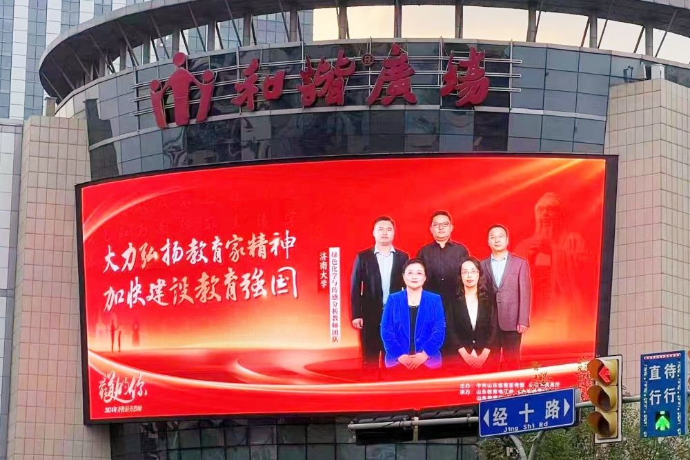 在和谐广场等大型建筑的电子屏幕上,best365刚刚荣获2024年“齐鲁最美教师”荣誉称号的绿色化学与传感分析教师团队精彩亮相。