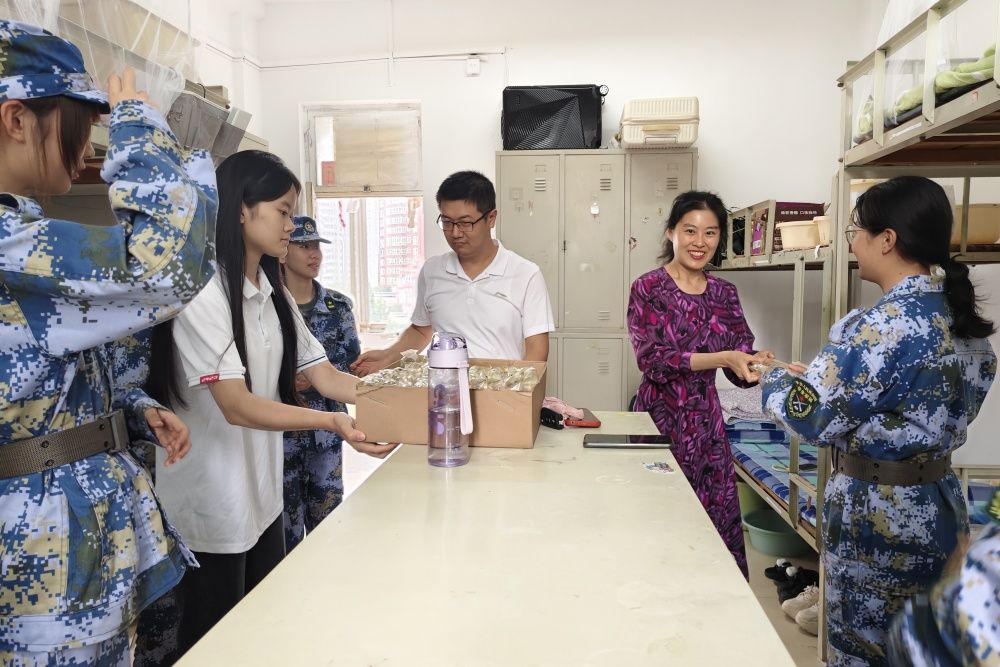 学院党委副书记、副院长信苏珊,2024级新生辅导员吕龙飞,深入宿舍、军训训练场与2024级新生共庆团圆,为新生送上学校定制的中秋月饼,并送上温馨的中秋祝福和学院关怀。信苏珊在走访宿舍时与新生们亲切交谈,询问他们入校以来的适应情况、军训感受及未来规划,鼓励他们珍惜大学时光,勇于探索,全面发展。同时,她还耐心解答了新生们关于学习、生活等方面的疑问,让初入校园的新生们感受到了家一般的温馨与呵护。