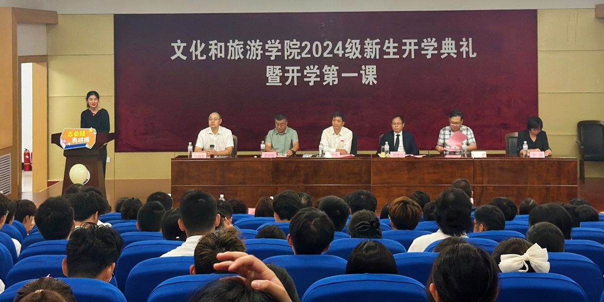 9月14日上午,文化和旅游学院2024级新生开学典礼暨新生入学第一课在经管楼一楼报告厅举行。文化和旅游学院党政领导班子成员、优秀校友代表出席开学典礼,参加开学典礼的还有教师代表、全体辅导员、新生班主任以及2024级全体本科生和研究生。典礼由学院党委副书记、副院长信苏珊主持。