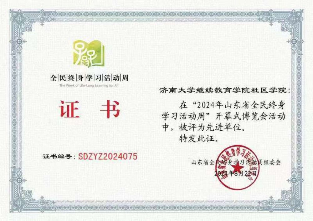继续教育学院 社区学院被山东省全民终身活动周组委会评为先进单位